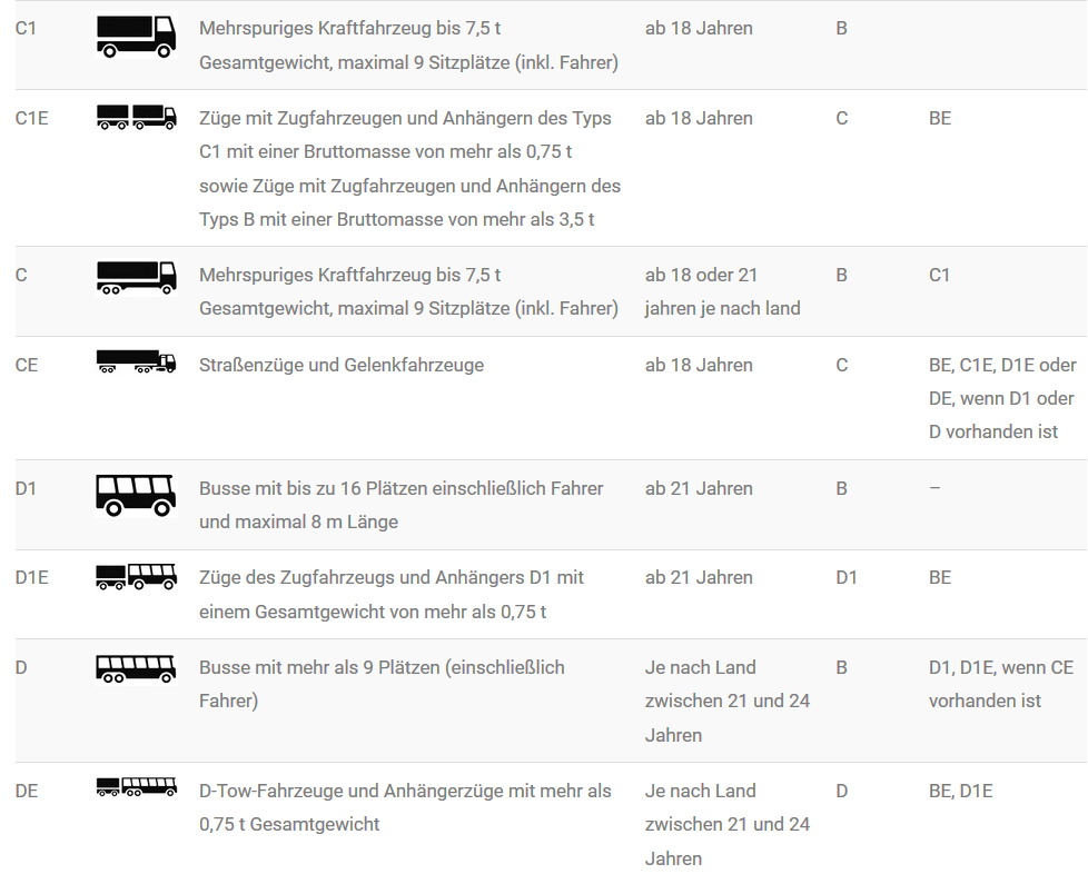 FAHRLIZENZKLASSEN
